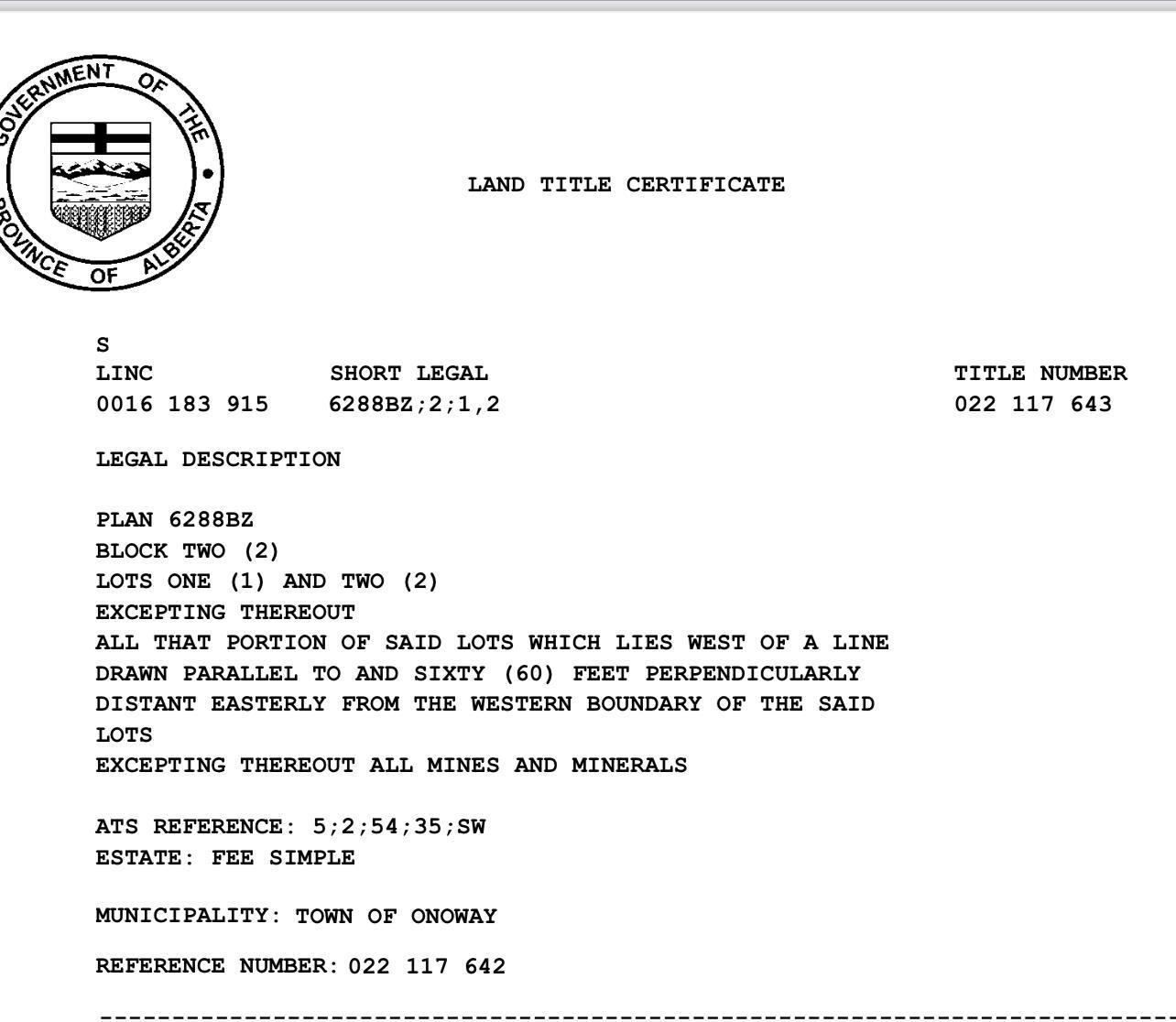Prime Commercial 4200 square feet lot located centrally in the Town of Onoway. Property considered as bare land. Water, Electricity, Gas and all other Town Services as usual. Main Lac Ste Anne Trail exposure....One block across the street from the famous Post Office Buildding on the main through-fare of the town. Prominent location for your new retail or office business.....Great opportunity in the heart of this growing town...Onoway....the hub of highways!