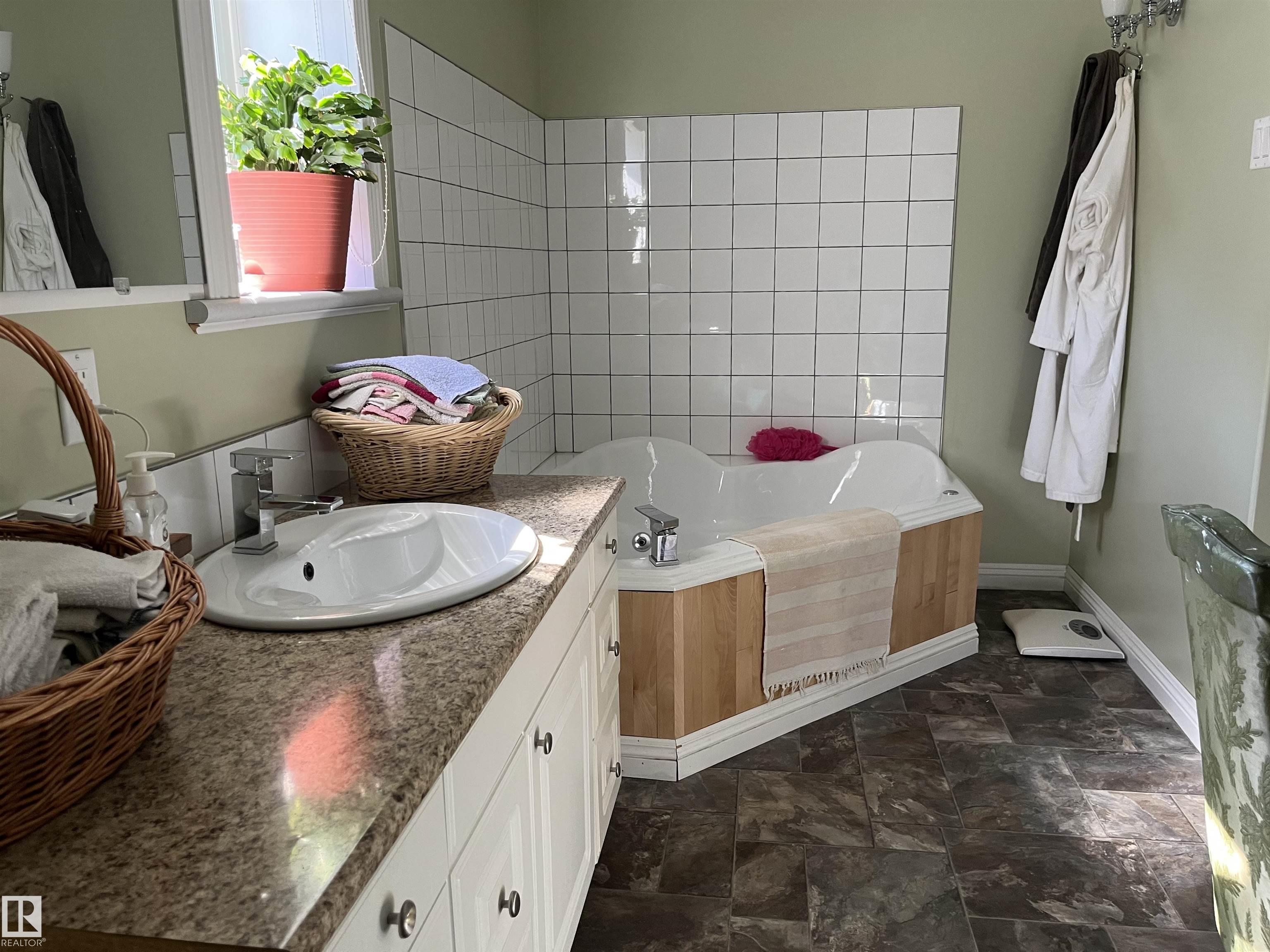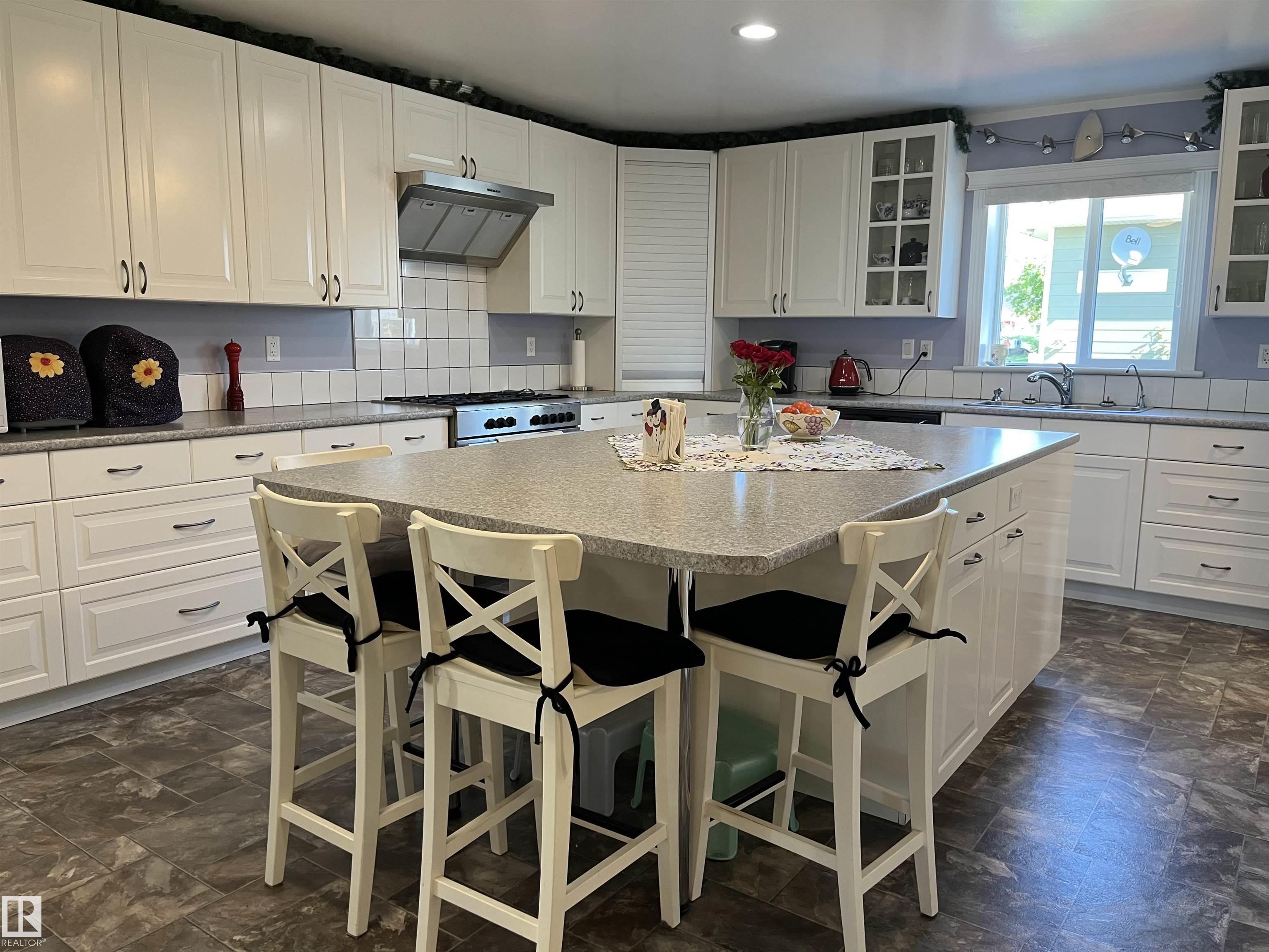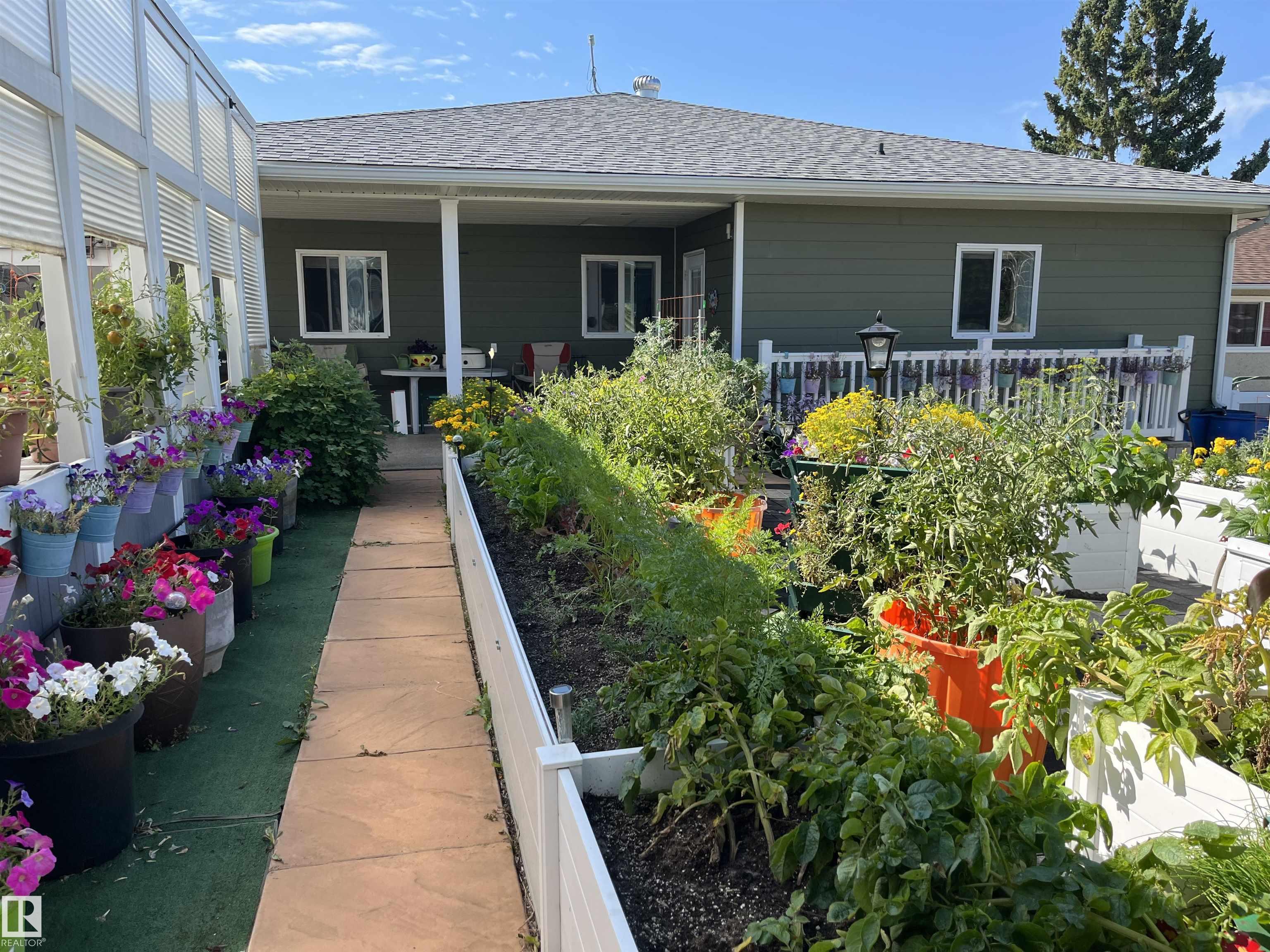 You can't imagine what this home has to offer. Start with the convenient, efficient, dream kitchen. 3 pantries, abundant cupboard space, pull out drawers, dumbwaiter to cold room, wine rack, gas stovetop with electric oven, a (chefs stove), 4.8' x8' island that also seats 4 people and much more. As you enter through the leaded glass doors into the foyer, you will notice how open the living room/dining area is featuring birch floors. The main bedroom is unique in design with and oversized ensuite, including a jetted tub. even main floor laundry. The basement features 2 bedrooms, lg rec room with kitchen, in floor heat plus more. The backyard is a gardeners dream, with raised gardens, green house within floor heat and heated plant bench, plant waterers, etc. Added bonus is the triple car garage, ICF construction, with in floor and overhead heat. This structure is ICF as well.
