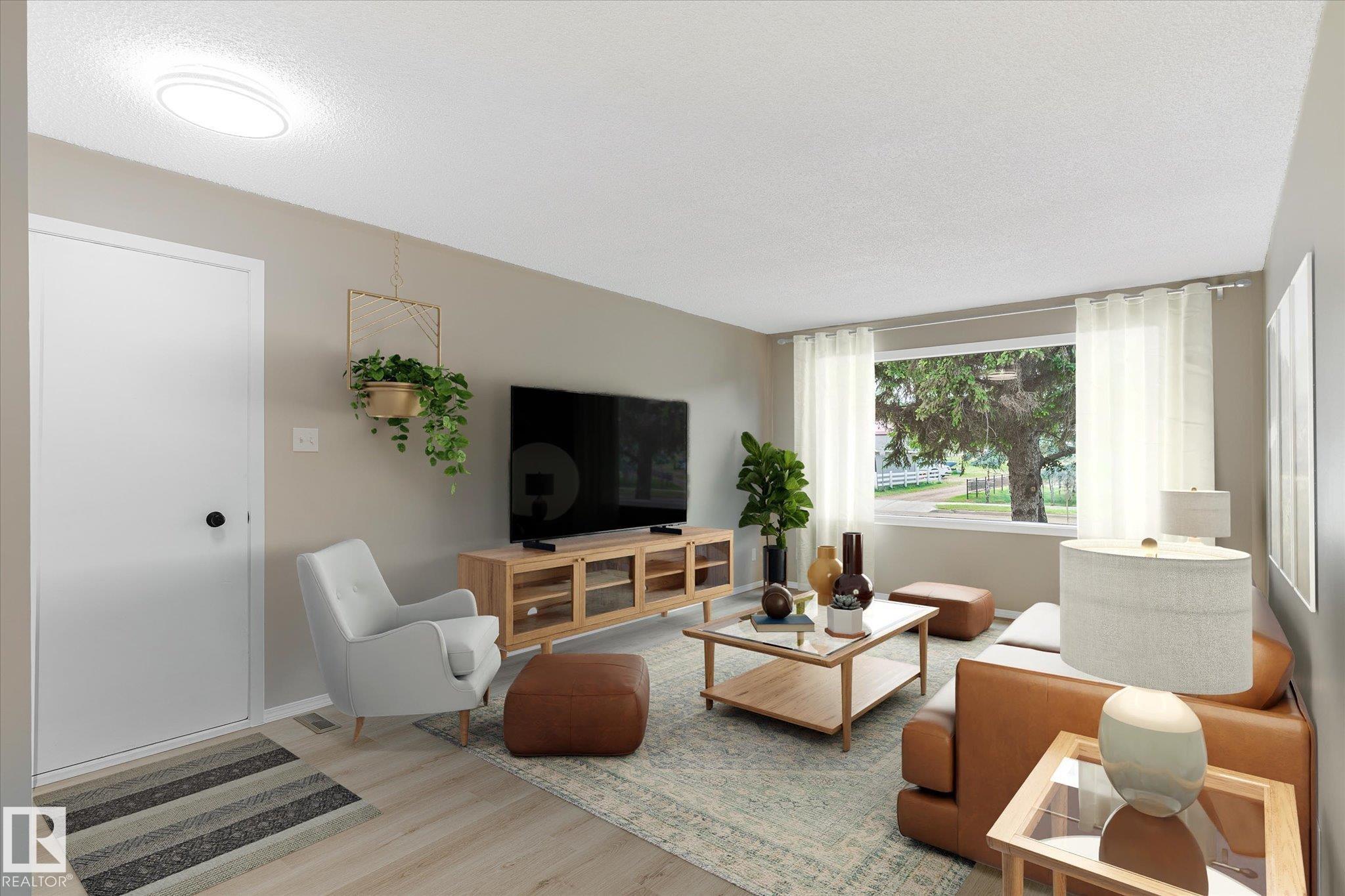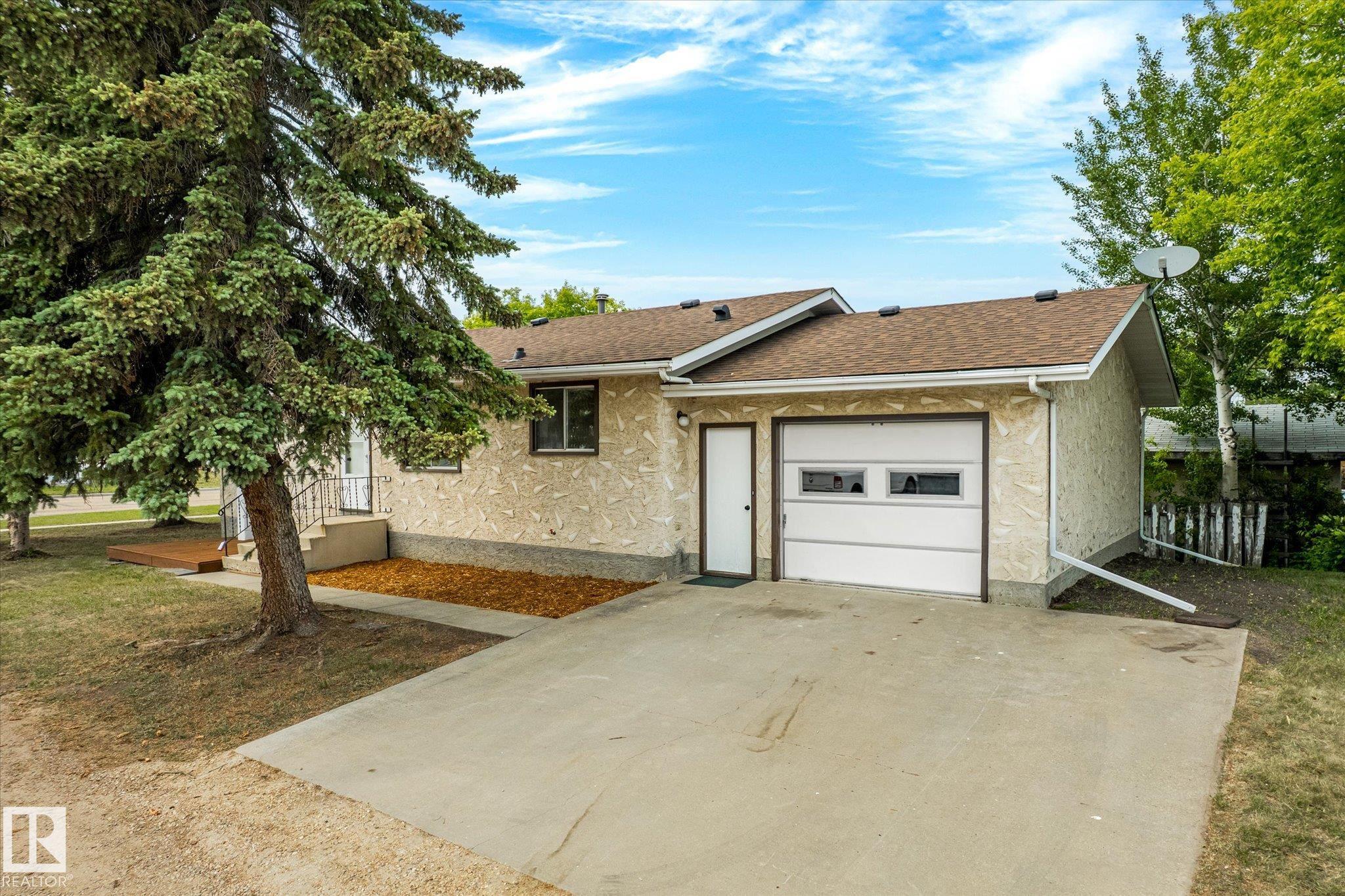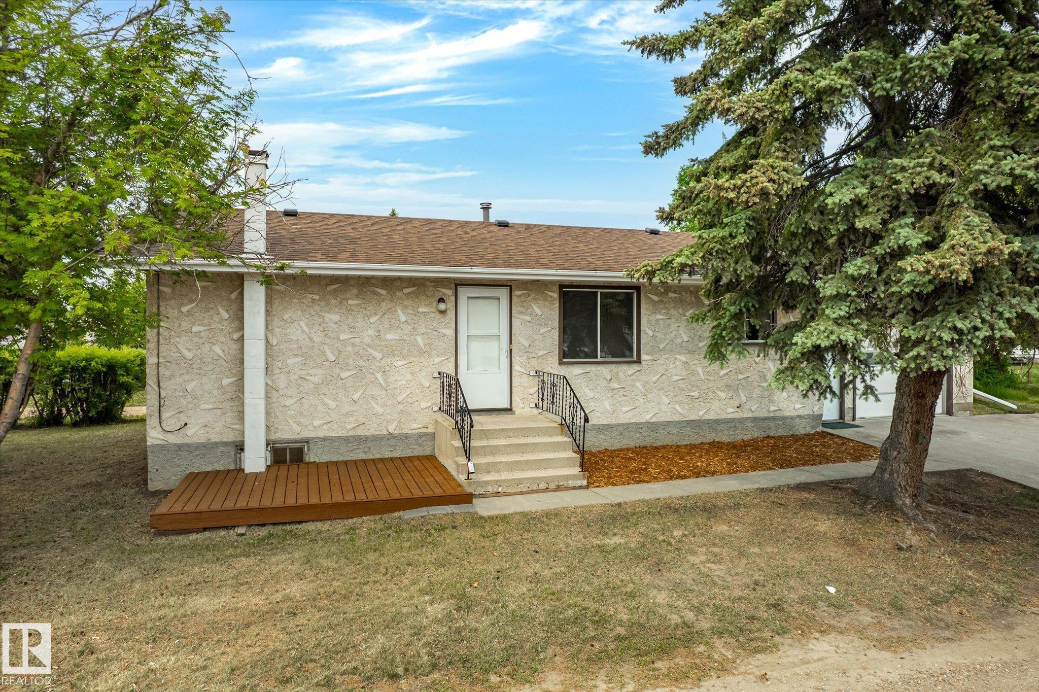 Tastefully updated home in Legal! Great first time home or investment property is conveniently located close to schools, playground, arena and shopping. The main floor features a fully updated kitchen complete with new countertops, sink and faucet. The living room provides plenty of space for entertaining. The two bedrooms, main floor laundry and 4 pcs bath complete the floor. Downstairs is partially finished and await the new owners final touches. The oversized single garage is freshly painted. The Many updates include, Shingles (7 years old), hot water tank, New flooring, Freshly painted through out, New counter tops, New sink and faucet.