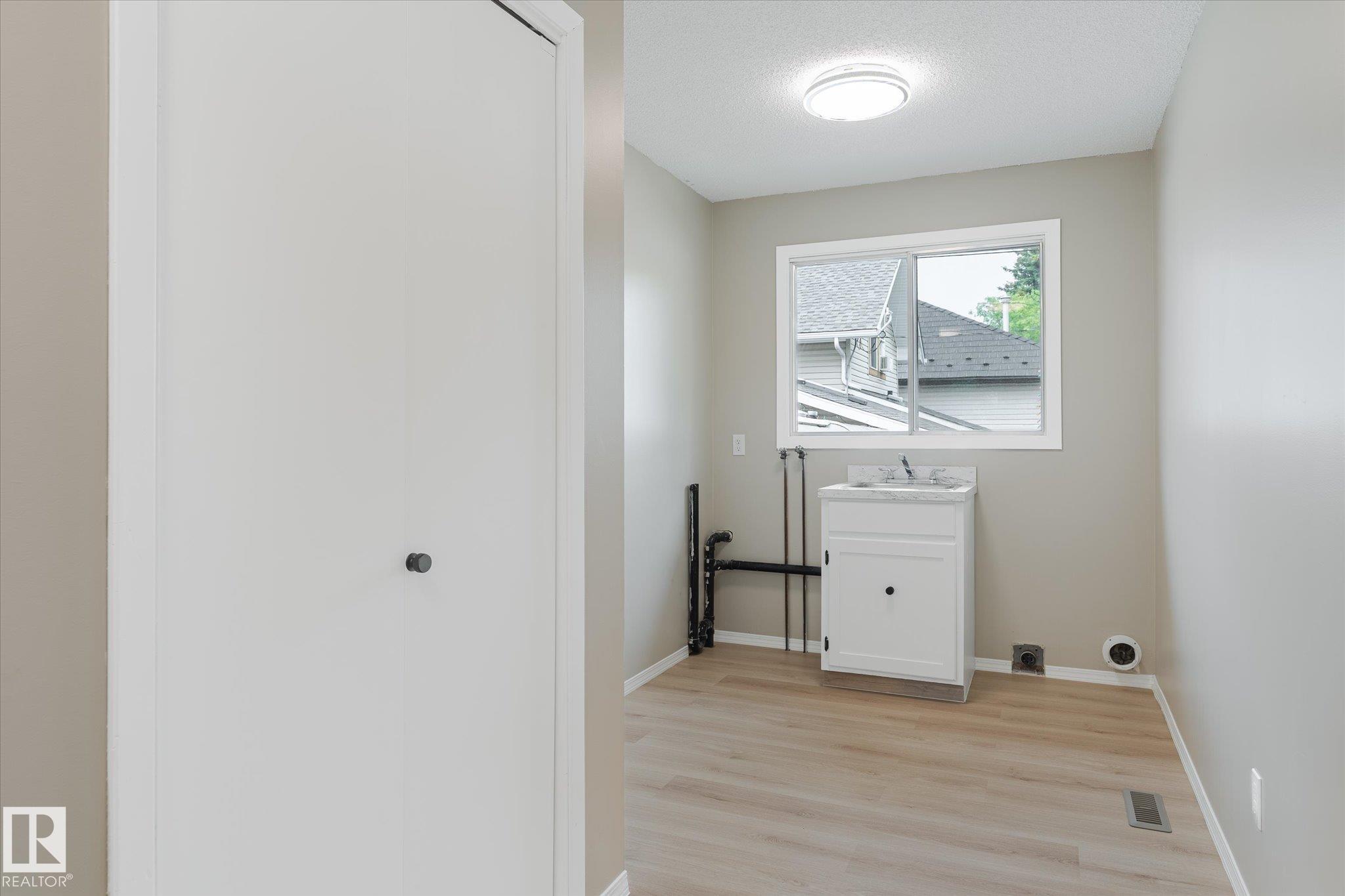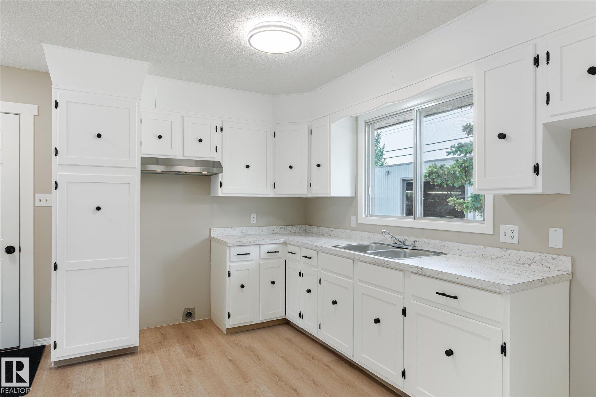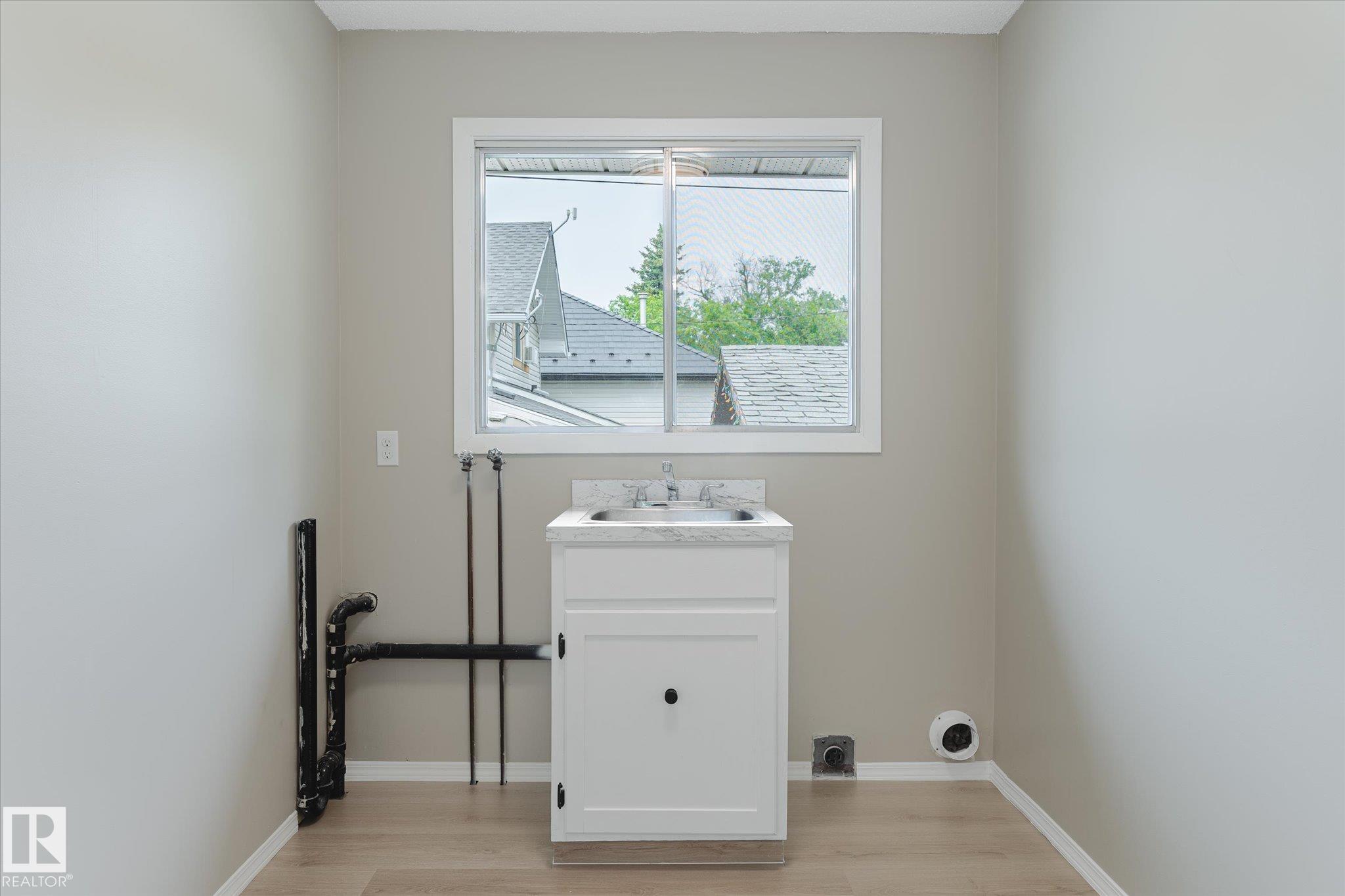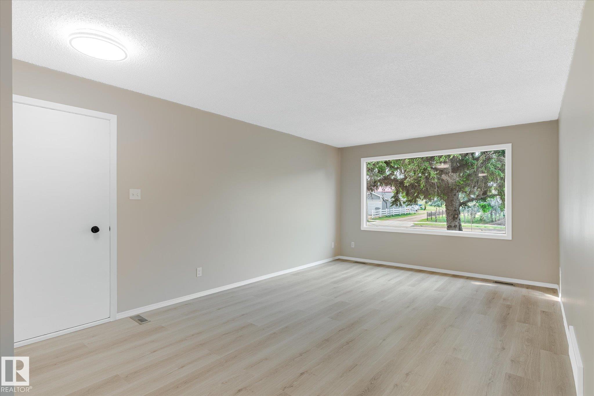 Tastefully updated home in Legal! Great first time home or investment property is conveniently located close to schools, playground, arena and shopping. The main floor features a fully updated kitchen complete with new countertops, sink and faucet. The living room provides plenty of space for entertaining. The two bedrooms, main floor laundry and 4 pcs bath complete the floor. Downstairs is partially finished and await the new owners final touches. The oversized single garage is freshly painted. The Many updates include, Shingles (7 years old), hot water tank, New flooring, Freshly painted through out, New counter tops, New sink and faucet.