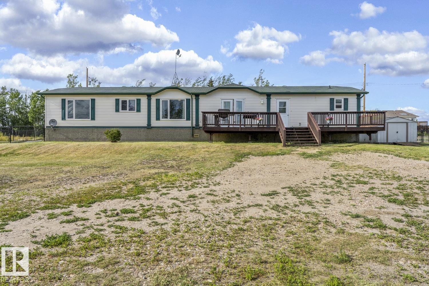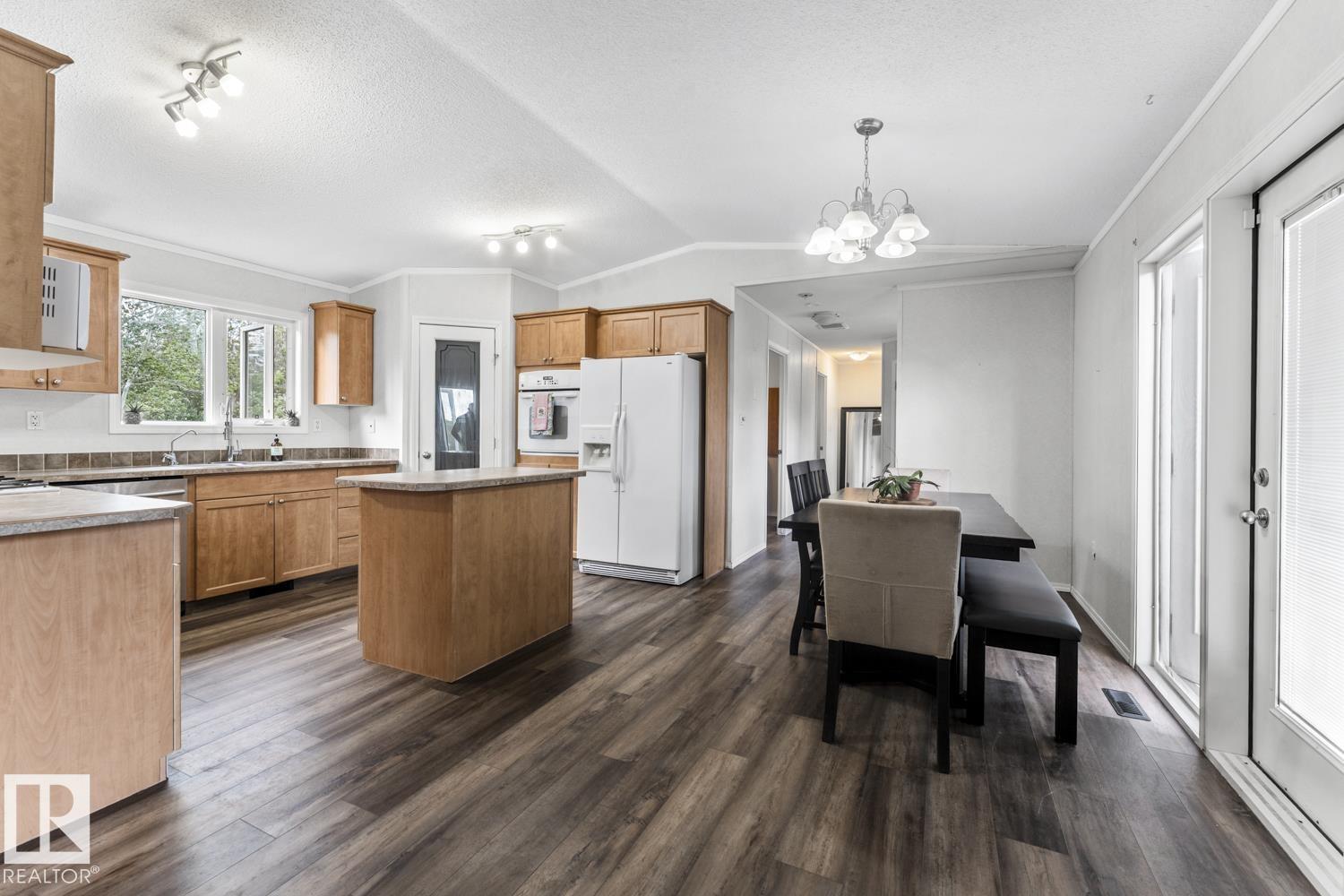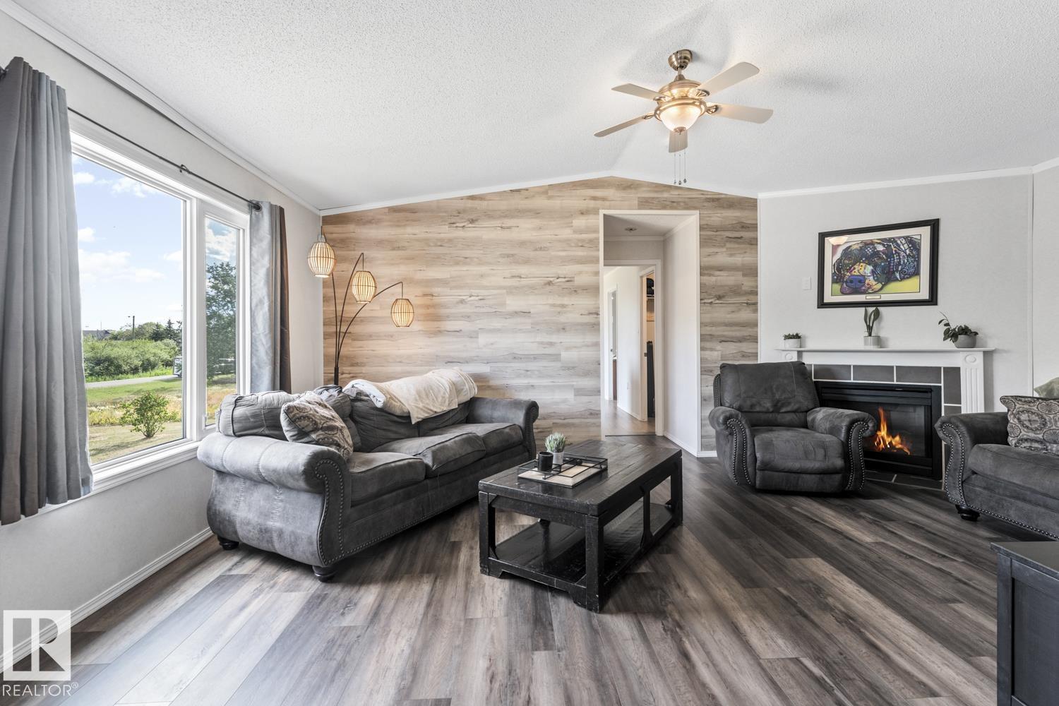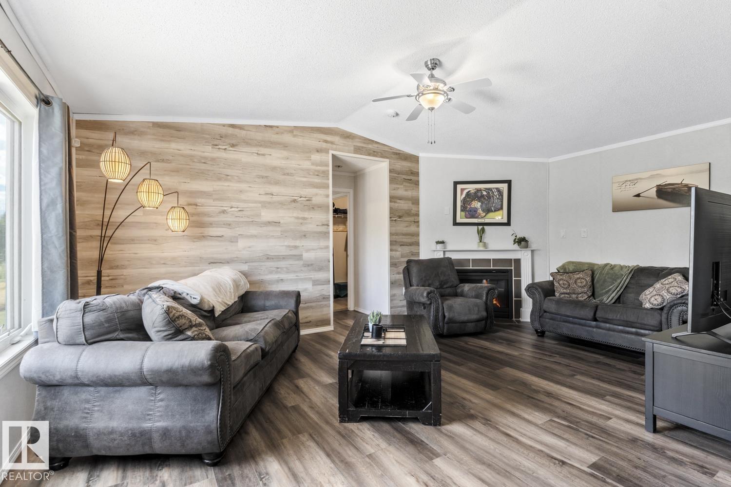 Warm & Welcoming on 0.54 Acres in La Corey! Step inside this well-maintained home featuring a bright, open living space with vaulted ceilings & new vinyl plank flooring. Spacious living room offers a corner gas fireplace & warm wood-look accent wall adds a cozy touch. Kitchen is designed for both functionality & style with ample cabinetry, a walk-in pantry, island & a good sized dining area with garden doors that open onto an oversized front deck complete with gas hookup for BBQ. 3 bedrooms & 2 bathrooms including a generous primary suite with walk-in closet & a 4-piece ensuite featuring an oversized jetted tub & separate stand-up shower. Enjoy the added convenience of main floor laundry & extra storage space. Outside, the landscaped lot includes 2 sheds, firepit area & fenced back yard with second deck. Located just off Hwy 55 on a quiet road, close to all hamlet amenities & easy access to Bonnyville (15 minutes south), Cold Lake (25 minutes east) & oil country. Start your next chapter HERE!