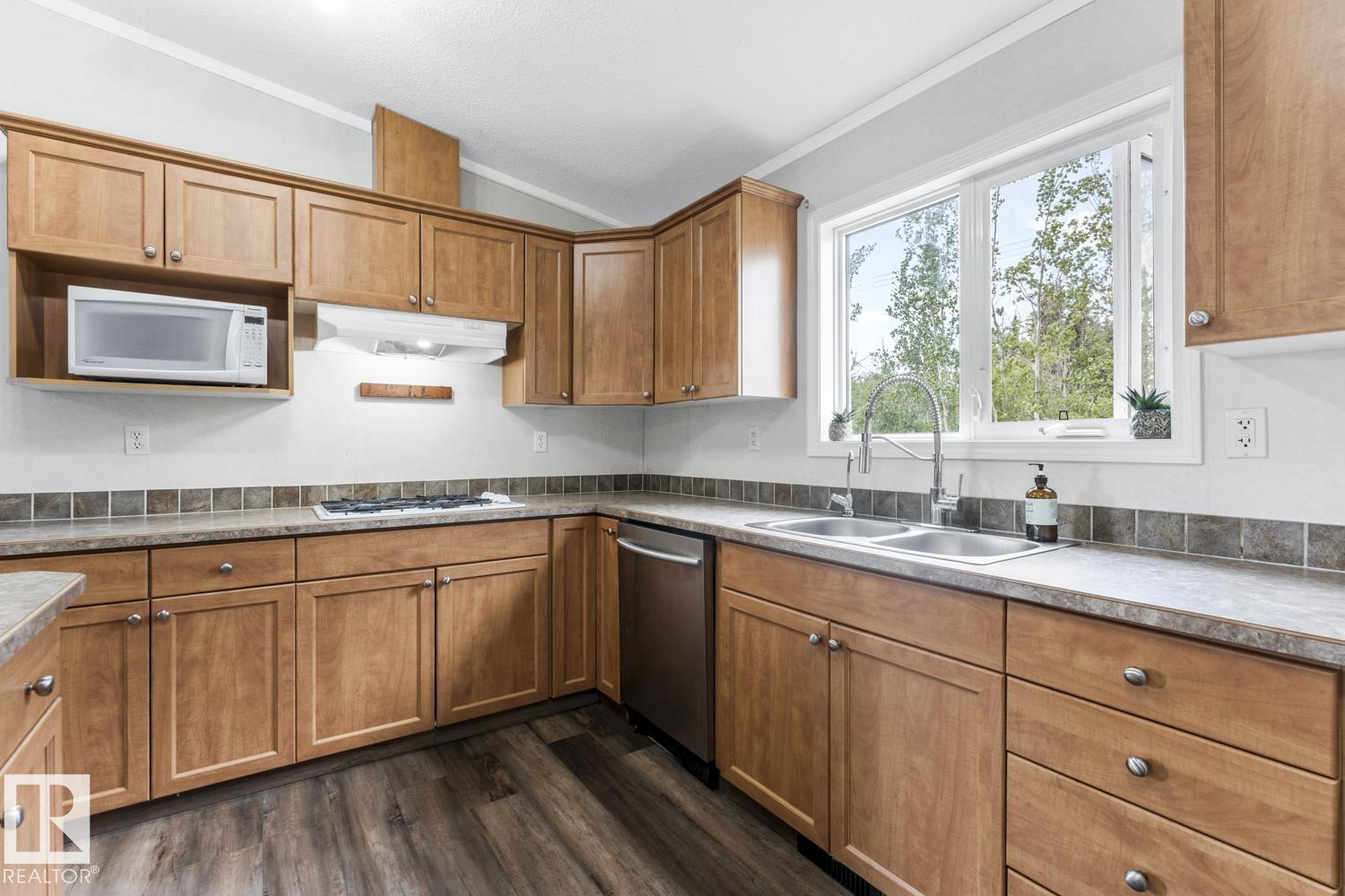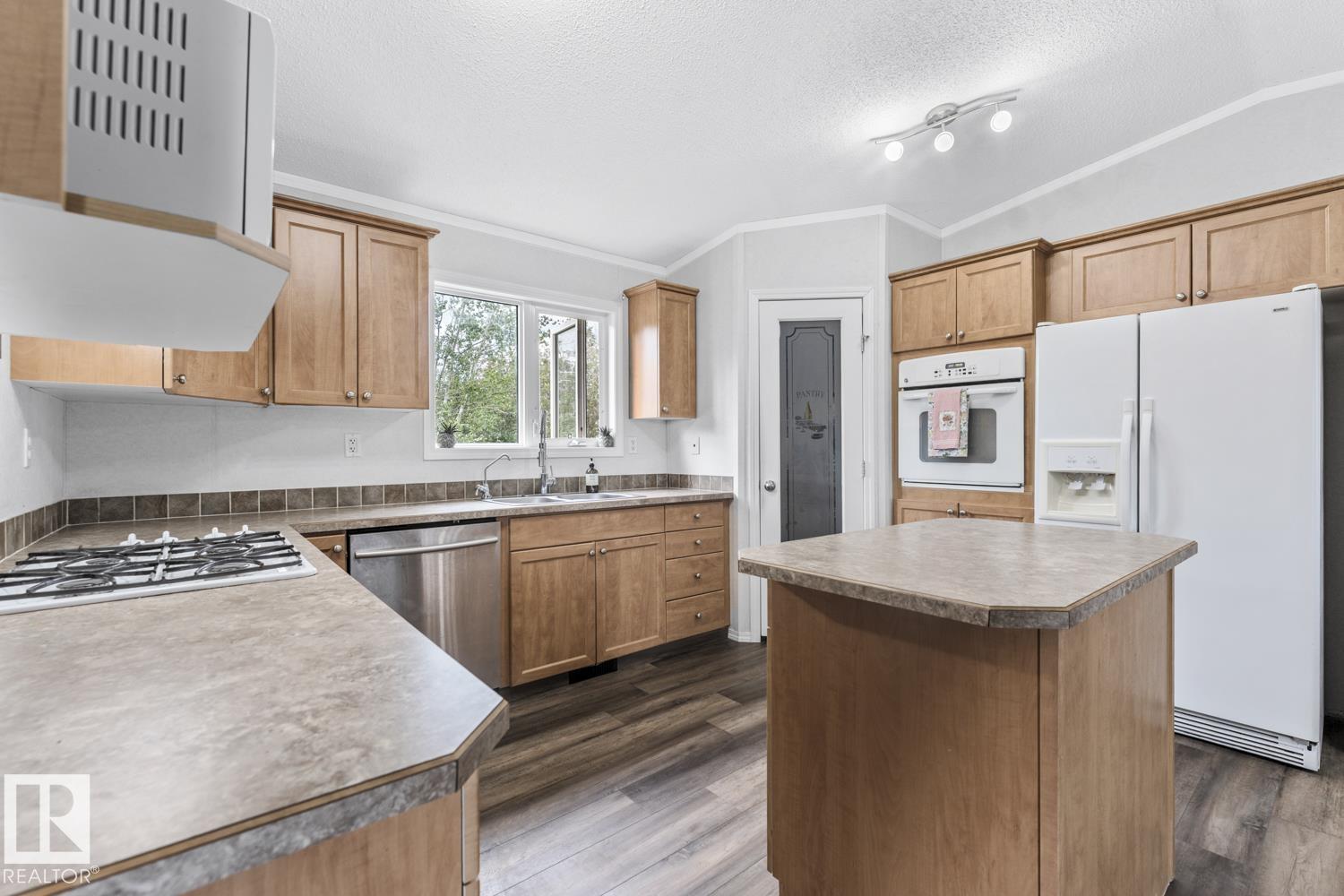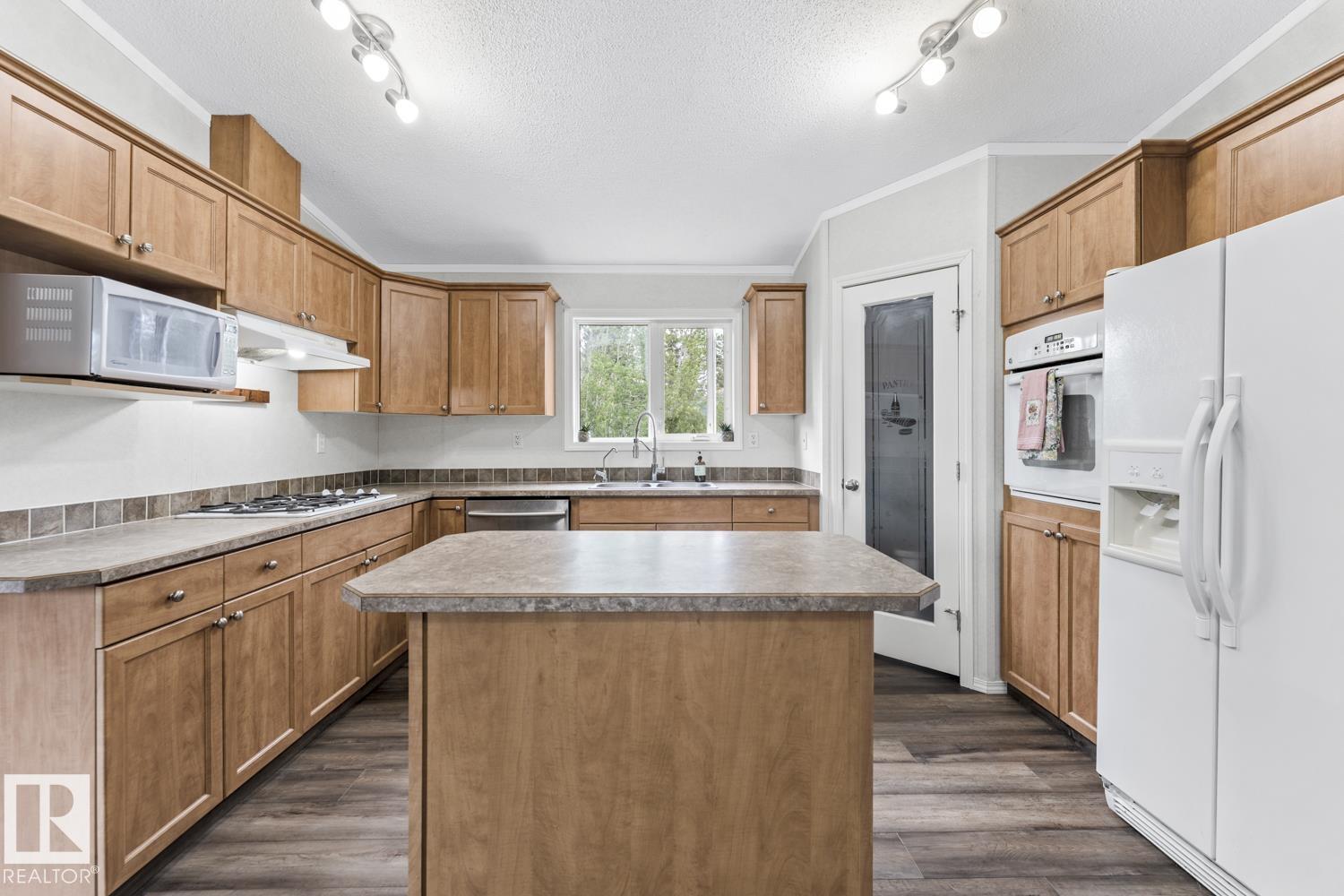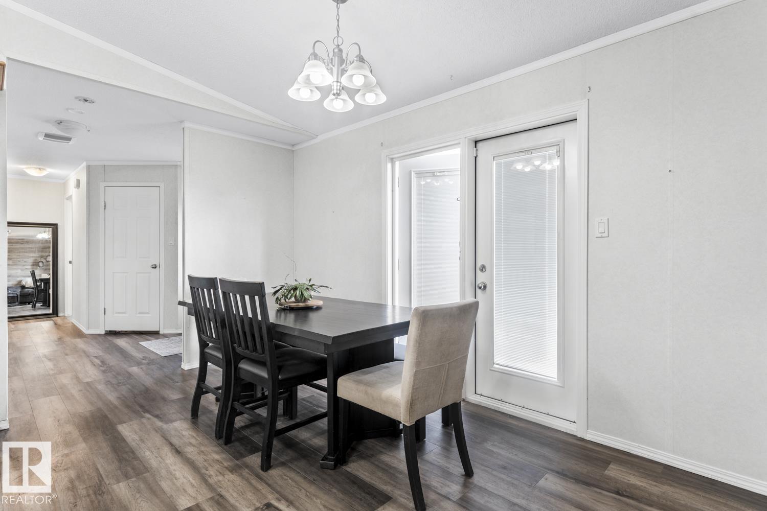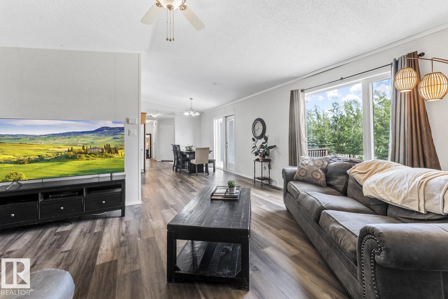 Warm & Welcoming on 0.54 Acres in La Corey! Step inside this well-maintained home featuring a bright, open living space with vaulted ceilings & new vinyl plank flooring. Spacious living room offers a corner gas fireplace & warm wood-look accent wall adds a cozy touch. Kitchen is designed for both functionality & style with ample cabinetry, a walk-in pantry, island & a good sized dining area with garden doors that open onto an oversized front deck complete with gas hookup for BBQ. 3 bedrooms & 2 bathrooms including a generous primary suite with walk-in closet & a 4-piece ensuite featuring an oversized jetted tub & separate stand-up shower. Enjoy the added convenience of main floor laundry & extra storage space. Outside, the landscaped lot includes 2 sheds, firepit area & fenced back yard with second deck. Located just off Hwy 55 on a quiet road, close to all hamlet amenities & easy access to Bonnyville (15 minutes south), Cold Lake (25 minutes east) & oil country. Start your next chapter HERE!