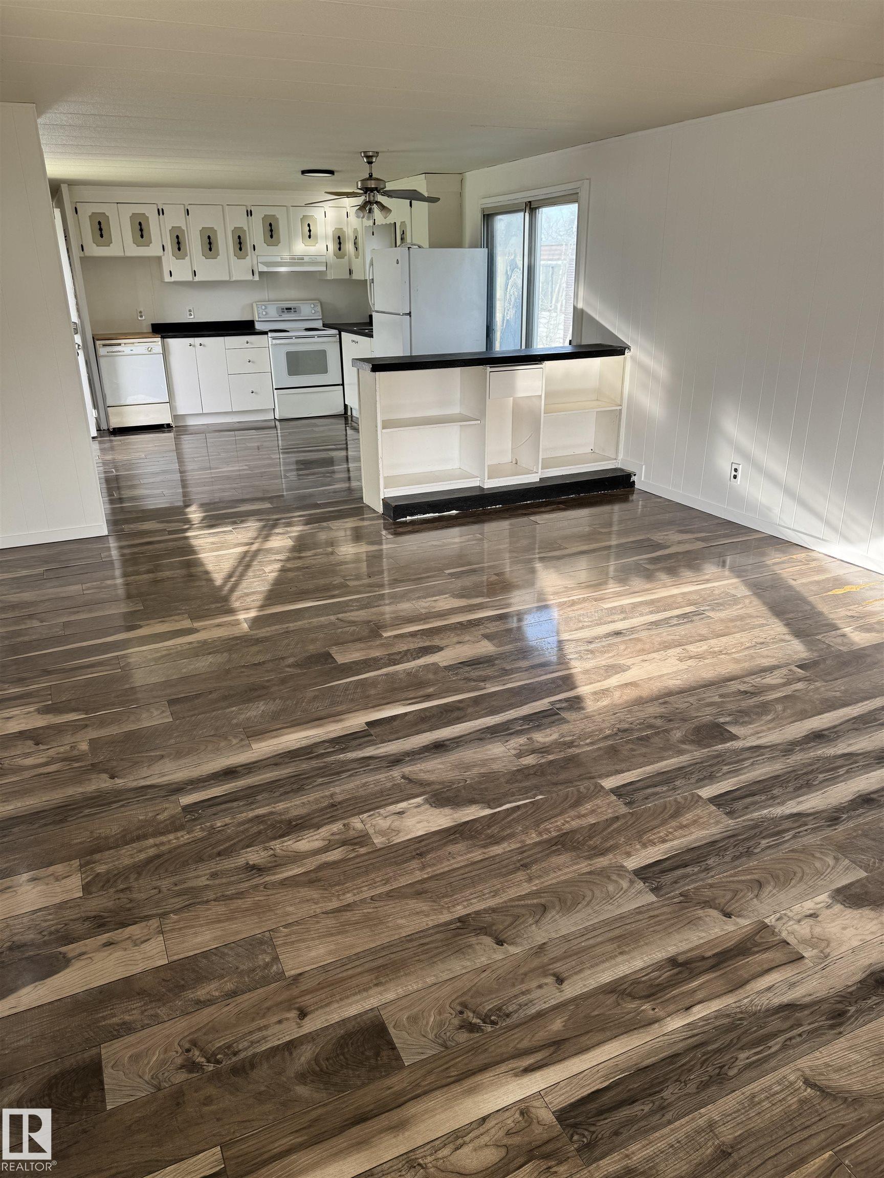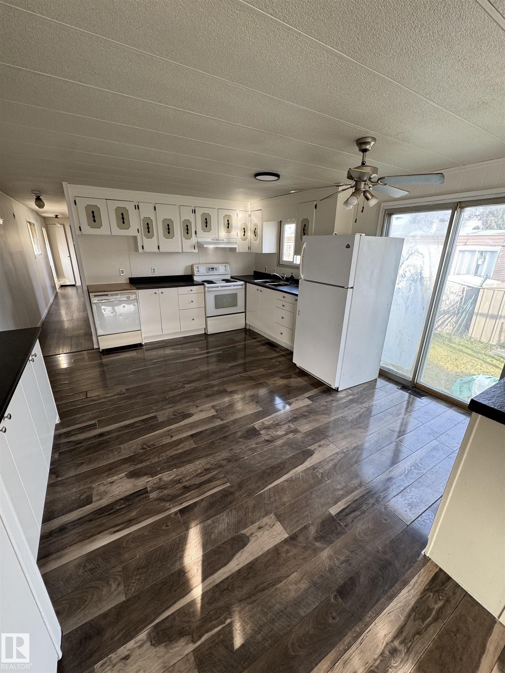 Charming 3-Bedroom Mobile Home with Recent Updates. Step into your open concept kitchen and living room, it has been recently been given a fresh coat of paint, replaced electrical outlet plates and new baseboards throughout the home. A must see! Updates throughout most of the interior had been done over the past six years including- new flooring, new hot water heater (June 2025), washer/dryer (2 years old) and the bathroom has been renovated to a 4-piece bath, that offers a spa-like shower column with jets. Outside you will enjoy sipping coffee or entertaining guests on a sizeable deck that has gates on either end, great for pets or small children. A large back yard extends behind the mobile home with ample room for a storage shed. Priced to sell.