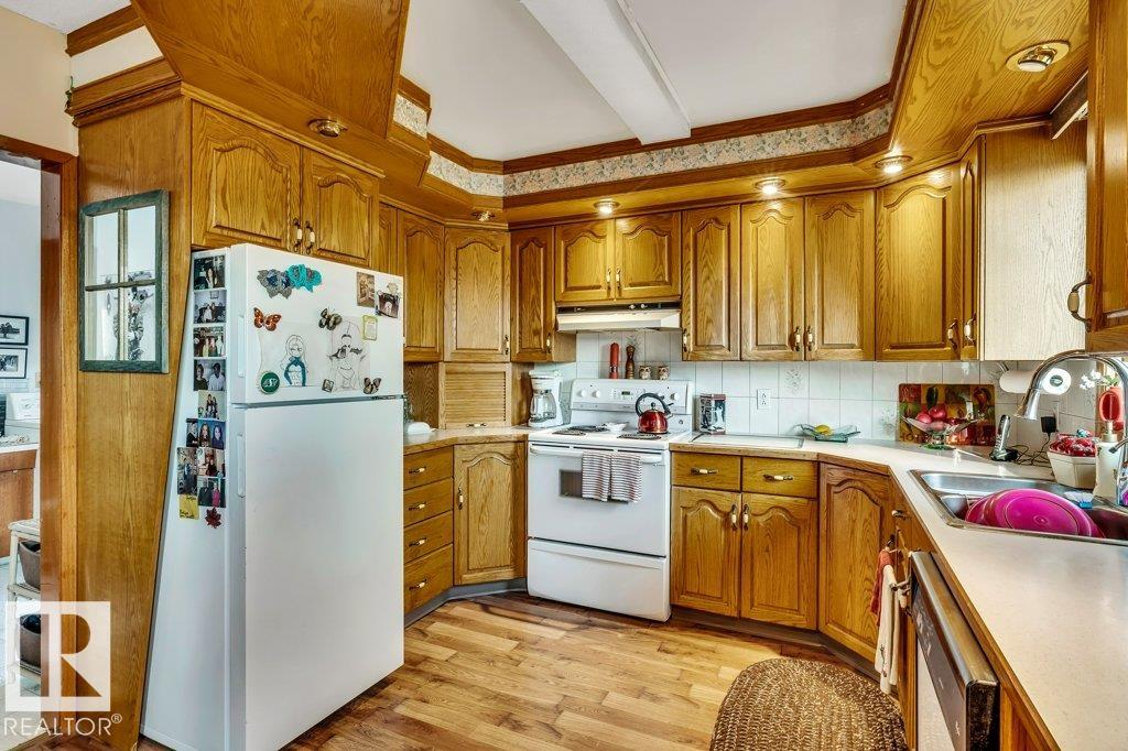 Charming Bungalow in a Quiet Mature Neighborhood!! Welcome to this 1258 sq. ft. bungalow that blends comfort, space, and functionality in a highly desirable location. With 3 bedrooms on the main floor plus a 4th bedroom in the fully finished basement, this home is perfect for families of all sizes. The basement also offers a cozy family room, ideal for movie nights or entertaining guests, gas stove for canning season, with a large garden area, in back yard or potential for In law suite The heart of the home is its large country kitchen, featuring solid oak cabinets, 4 convenient lazy Susan's, and ample workspace for the avid cook. Main floor laundry adds ease to your everyday routine. Step outside and enjoy the beautifully landscaped, fenced yard, offering both privacy and charm. An oversized double garage provides plenty of room for vehicles, tools, or hobbies. Located in a quiet, mature area, with no thru traffic this home offers peace and tranquility while still being close to amenities.